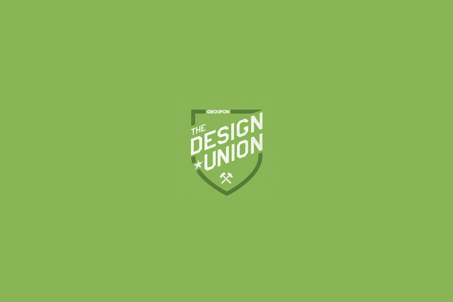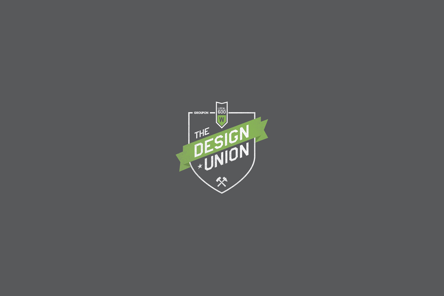 Groupon's design department created a unique identity to improve team morale and attract potential employees. Rather than create a single logo, a visual language was created and applied across t-shirts, notebooks, letterheads, envelopes, and welcome kits.